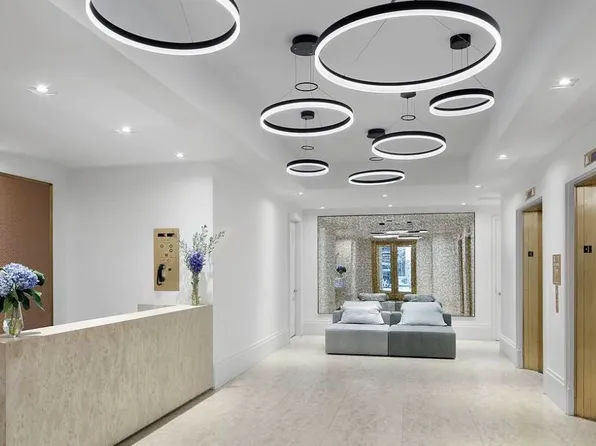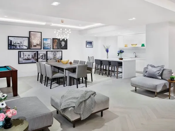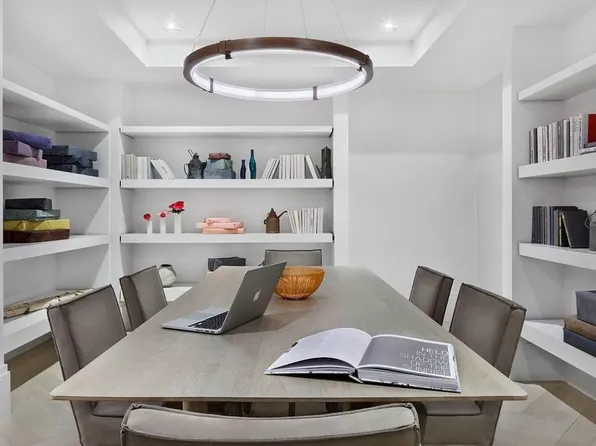 Located at One Brooklyn Bridge Park, this home features soaring 13" ceilings and oversized windows that flood the space with light and offer skyline views over Brooklyn Heights and Downtown Brooklyn. The open living and dining area includes custom built-ins and a chef's kitchen with Dada Italian cabinetry, marble island, Bosch appliances, and Sub-Zero refrigerator.