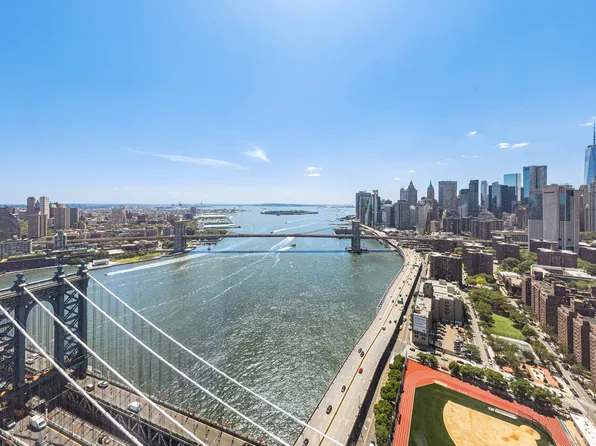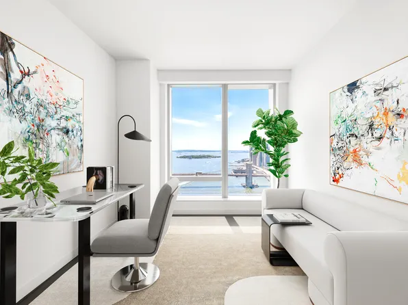 14FT ceilings throughout the unit allow for sunshine from sunrise to sunset. The primary bedroom is expansive which can easily fit king-size bedroom sets, all with East River views. The master bath features double vanity, deep soaking tub and a shower stall.