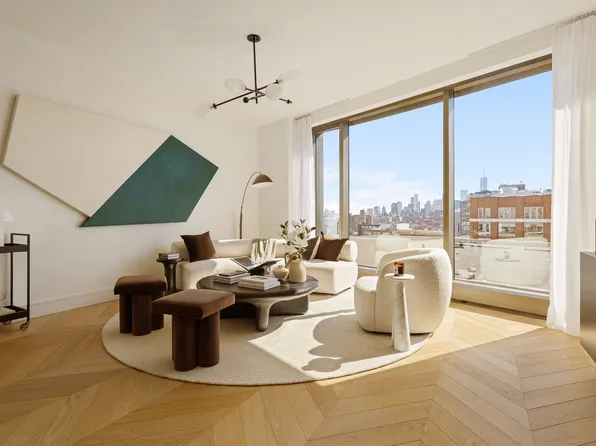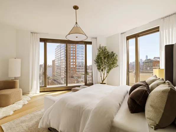 Directly overlooking the High Line, Residence East 19E offers an elevated take on contemporary West Chelsea living. This pristine 2-bedroom, 2.5-bathroom home spans approximately 1,261 square feet and is filled with natural light and open city views.