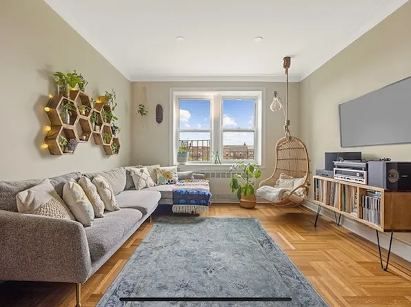 Located just two blocks to Prospect Park and the Q express train, this top floor one bedroom showcases oversized corner windows, amazing light and beautiful city views.