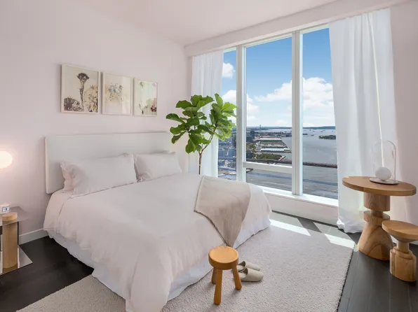 No pet. Residence 21D is a 1123 square foot two bedroom, two bathroom, with an open gourmet kitchen and breakfast bar. This spacious corner residence faces South West and South East, with spectacular sunrise and sunset views overlooking NY Harbor, Manhattan and Brooklyn Bridges and One World Trade. Warm, modern interiors are brought to life by the renowned design team at Meyer Davis Studio.