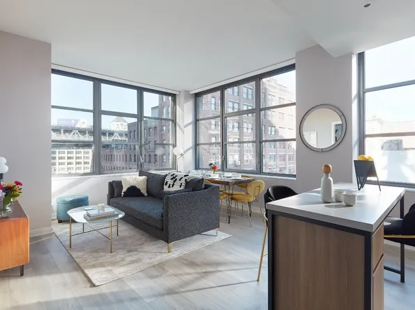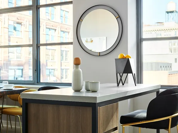 Residence 33E at One Manhattan Square is a 700 sq/ft one-bedroom, one-bath home with sweeping northeast views of the Empire State Building, Midtown skyline, and East River. The open layout, complete with a kitchen and breakfast bar, is perfect for both entertaining and everyday living.