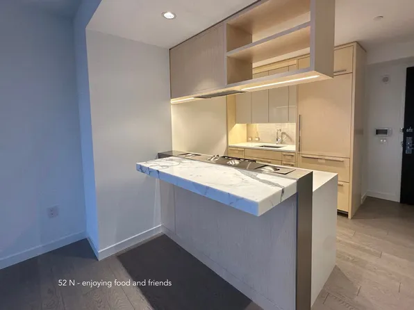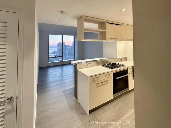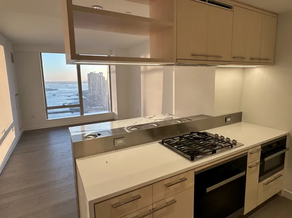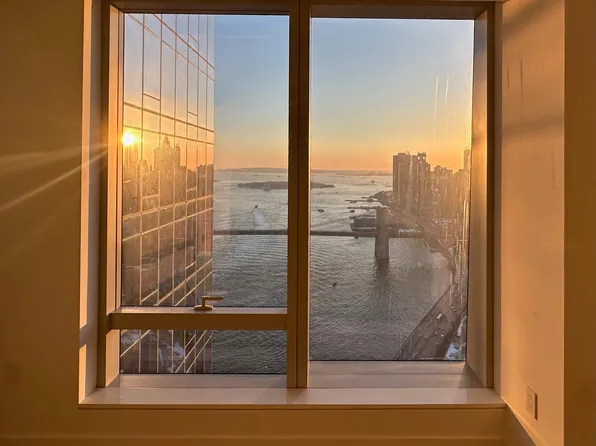 Residence 59L is a beautifully designed 709 SF one-bedroom, one-bath home featuring an open gourmet kitchen with breakfast bar and premium Miele appliances. Facing southwest, this bright and spacious residence offers breathtaking sunset views over New York Harbor and the Downtown skyline.