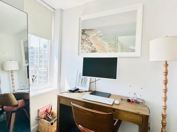 Penthouse 2 Bedroom, 2 Bath with a split bedroom layout, southern exposure with Downtown city views, generous closets, in-home washer/dryer, upgraded strip wood flooring and solar shades.