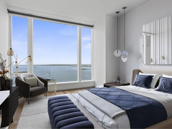 Located in the southeast corner of the building, this home offers exceptional natural light through oversized floor-to-ceiling windows, providing extraordinary views of New York Harbor, the city skyline, and many iconic buildings that indelibly define NYC.