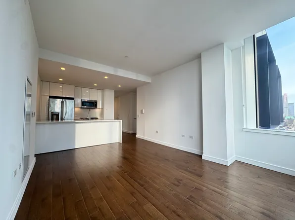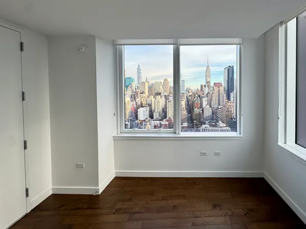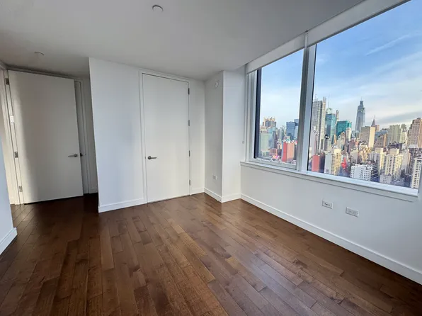 FABULOUS NYC APARTMENT IN THE SKY-Enjoy Sweeping NYC Skyline Views of all Lower Manhattan, from the top of the Empire State to the Statue of Liberty and down the entire Hudson River. This high floor, corner apartment with 9’ Ceilings, enjoys Floor-to-Ceiling Windows affording a breathtaking NYC living experience every day. The apartment features an over-sized, corner Living room + Dining room and an open Kitchen featuring Stainless Steel appliances.