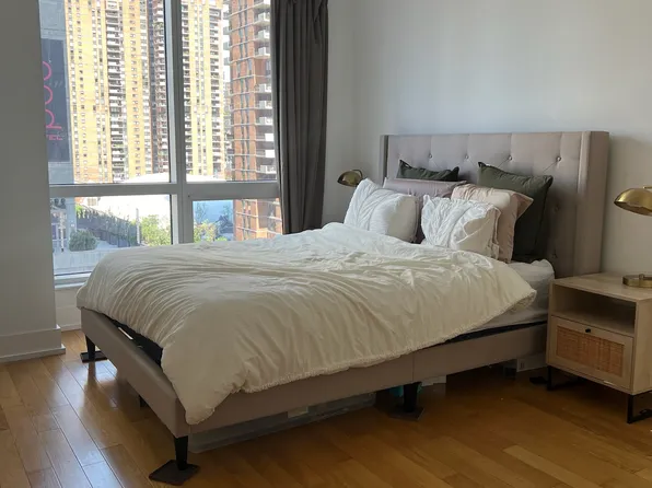 This large and well appointed, 1-bedroom, 1-bath, sun-soaked corner unit is on the 9th floor. It features extra-high 9 foot (2.