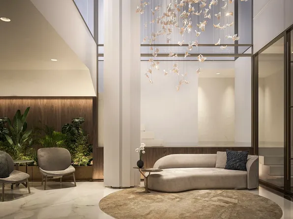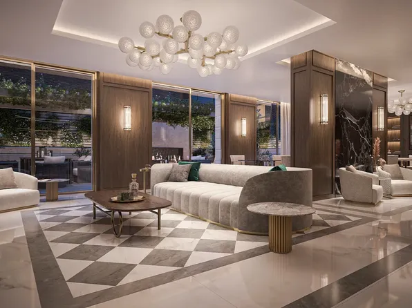 Step into a world of refined sophistication in this extraordinary corner residence at Park Avenue Court, where sun-drenched southern and western exposures flood the space with natural light through soaring loft-style windows.