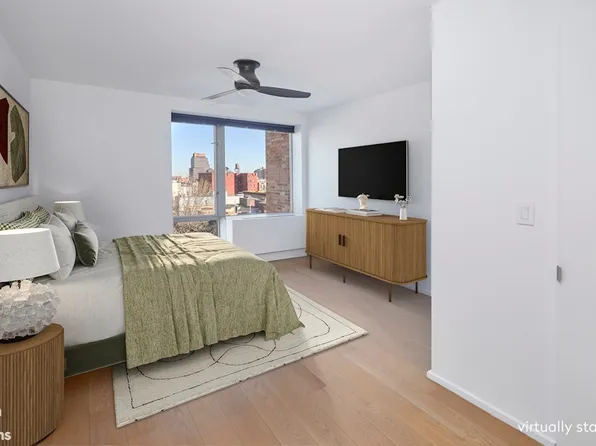 INVESTMENT UNIT. LEASED UNTIL 1/7/2026. CAP RATE 2.3%. Brand new north east facing corner 2 BdRm 2.5 bath with LARGE BALCONY at the PATAGONIA, a ground up 12 story development just now completed in South Harlem! Central HVAC. Full-sized vented LG washer/dryer. 1303 SqFt (121 m2) Interior 85 SqFt (8 m2) Exterior.