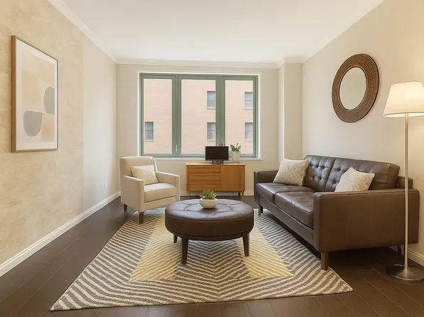 Welcome to Residence 828 at 55 Wall Street, a bright and spacious 886-square-foot furnished loft located in the prestigious 55 Wall Street Condominium. Designed by the renowned Calvin Tsao and Zack McKown, this elegant home blends timeless Beaux-Arts architecture with modern luxury. The expansive open layout features wide-plank mahogany floors, soaring ceilings, and designer furnishings, all carefully curated to complement the sophisticated space.