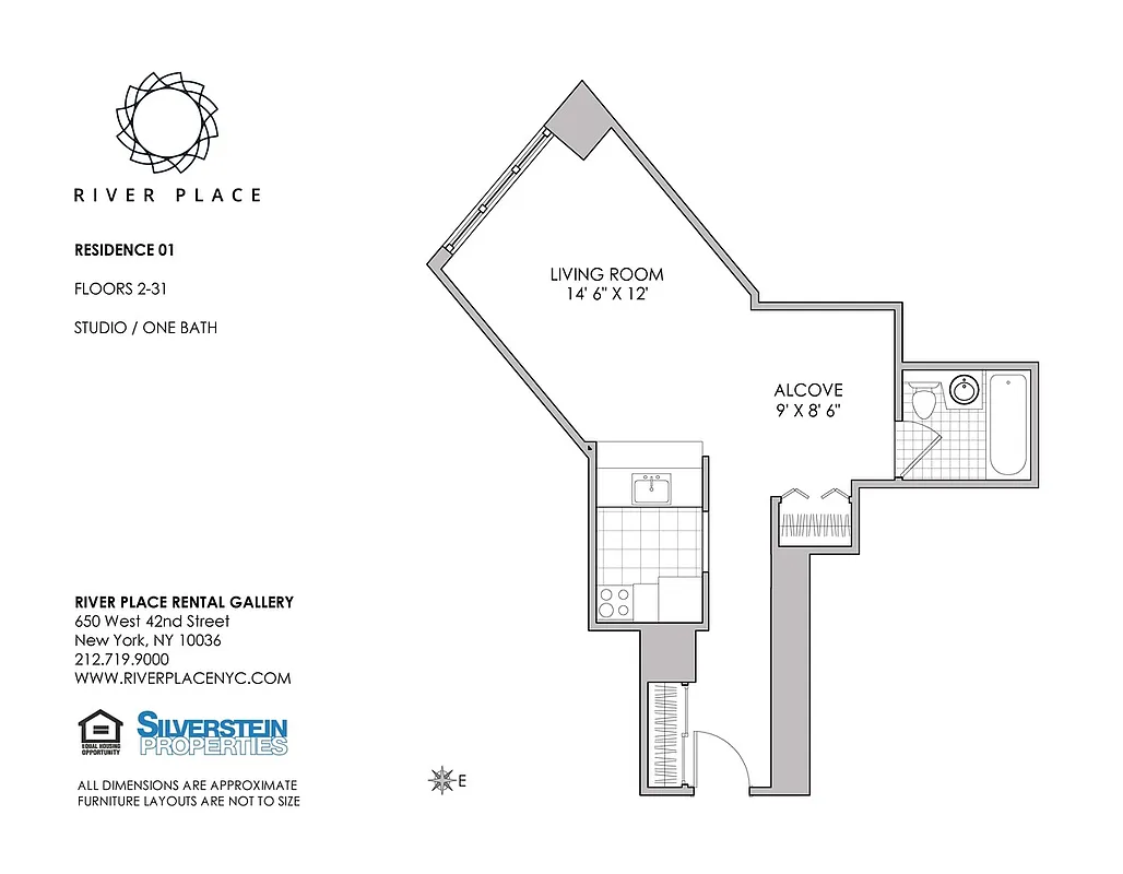 Studio Alcove apartment with open kitchen and breakfast bar. Laundry room on every floor. Recreational amenity package includes a health club with 75' glass enclosed swimming pool, indoor basketball court,...