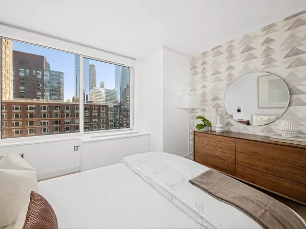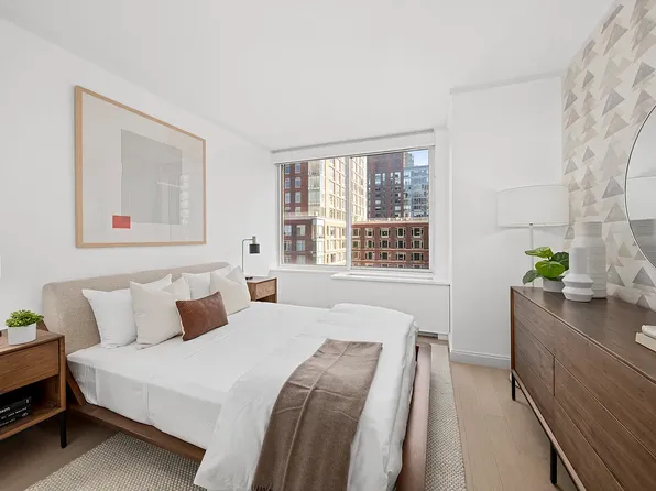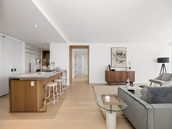 Welcome to Residence 5N at River & Warren, a thoughtfully designed split two-bedroom, two-bathroom home in one of Battery Park City's most coveted full-service condominiums. Spanning 1,061 square feet, this east-facing residence is bathed in morning light and looks out over the lush canopy of Teardrop Park.
