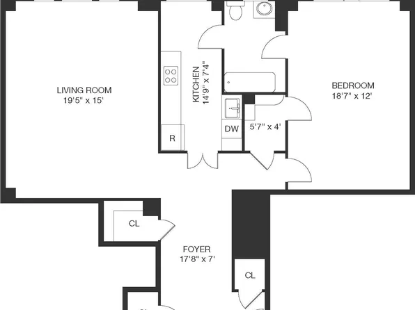 This 1 bedroom, 1 bathroom apartment boasts a spacious and seamless flow, featuring an open floorplan with a chef-inspired kitchen including stainless steel appliances, plenty of cabinet and storage space and a breakfast bar that opens to the living room; perfect for dining and entertaining.