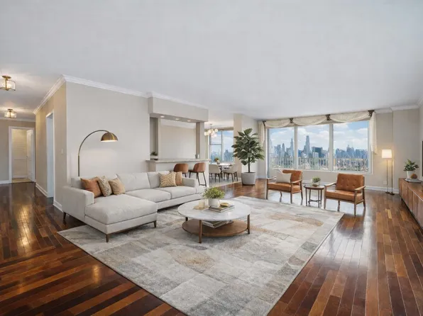Stunning Downtown AND Uptown Manhattan Views abound from every window of this rarely available MAGNIFICANT 2 BED 2 BATH with DIRECT SE Exposures!!! 1450 SQUARE FEET of PURE LUXURY await your arrival! A masterful layout with the MILLION DOLLAR VIEW as your wallpaper. A chef's kitchen with a private dining area is ready for both those great parties and the perfect romantic dinner.