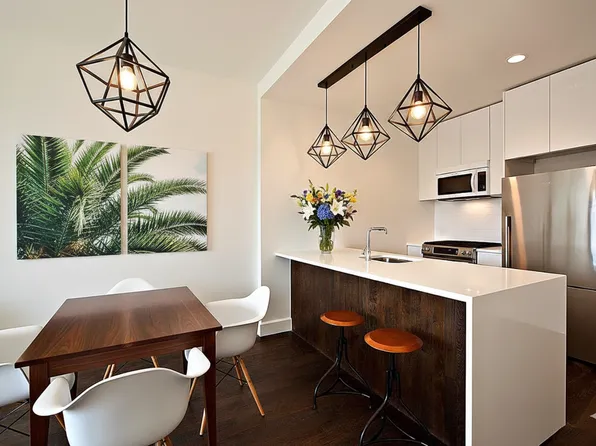 Unit Features: Southeast exposure 1Bed/1Bath. The L-shaped kitchen features: abundant cabinet space, composed with cabinetry finished with sand ash veneer and extreme matte laminate, a Viatra quartz slab countertop and backsplash, top-of-the-line Bosch appliance package that includes an outside venting range hood, and Monogram microwave.
