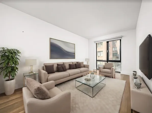 This is the largest two-bedroom line in the building. Stainless steel appliances in kitchen. Living room and bedroom both with excellent closet space. Soho Court is a post-war elevator building with fitness center, laundry, courtyard, and in-house Resident Manager.