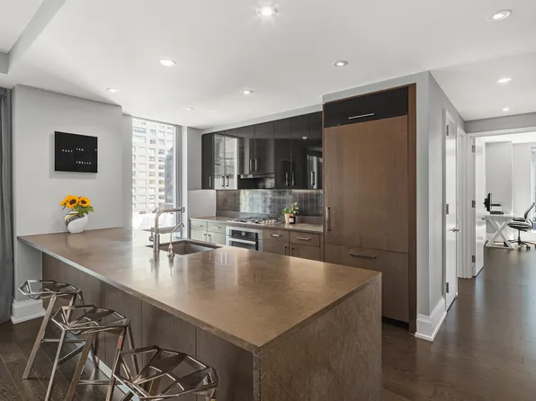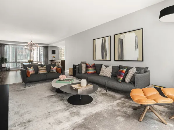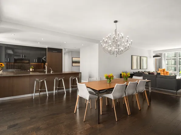 This expansive three-bedroom three-bath apartment features a thoughtful layout designed for privacy and effortless daily living. Floor-to-ceiling windows flood the open-concept living and dining areas with natural light, highlighting the premium finishes and a sleek designer kitchen.