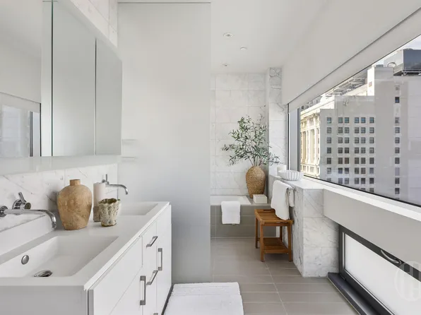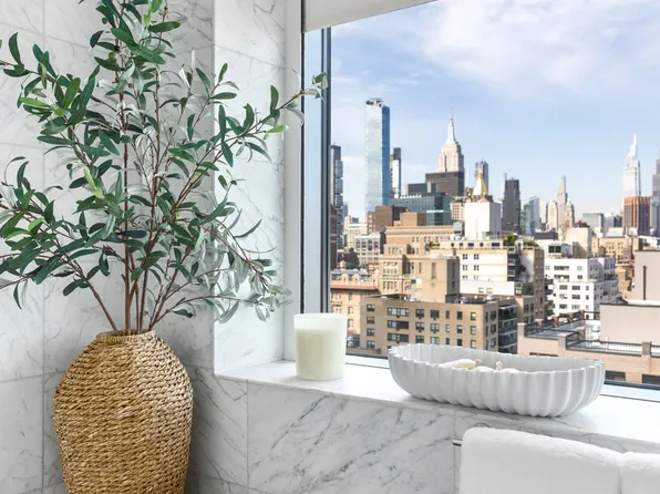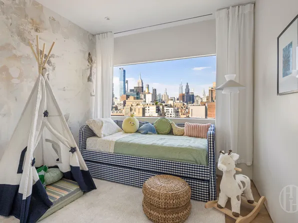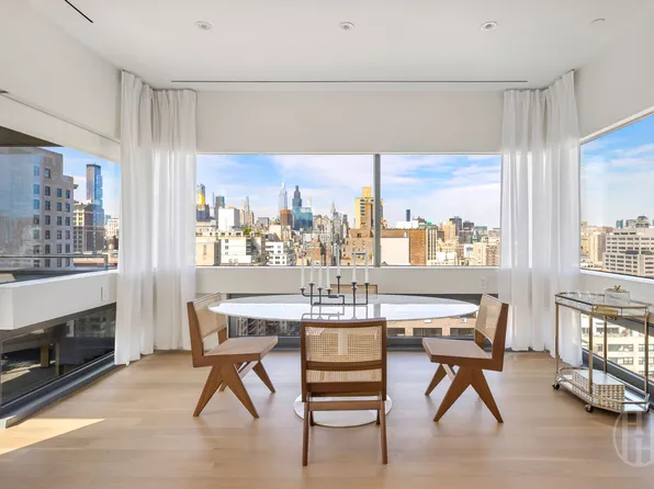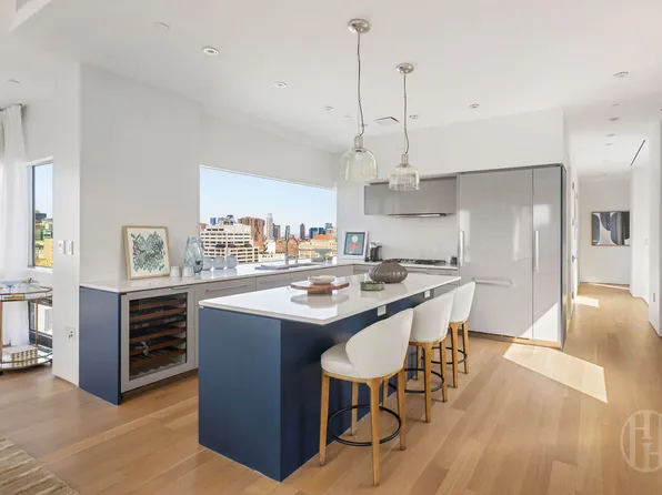 Spanning 1,976 sq ft, this three-bedroom, two-and-a-half-bath home features a generous 355 sq ft private terrace and a layout unlike any other in the building. The masterfully-crafted residence conceived by Paris Forino boasts high style and design, and is filled with sunlight pouring in from generous windows and glass doors facing south to the lush garden.
