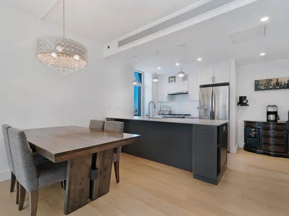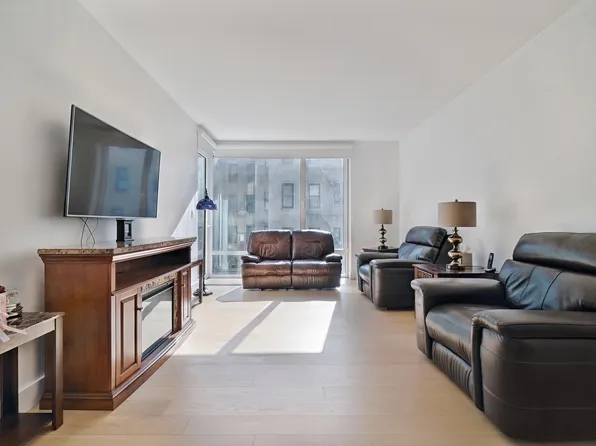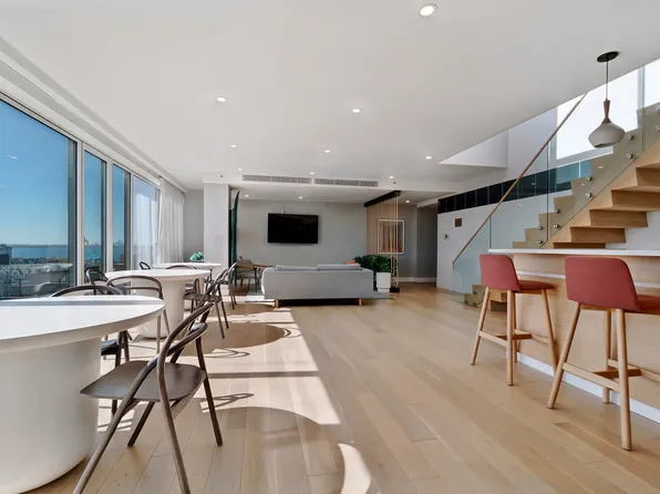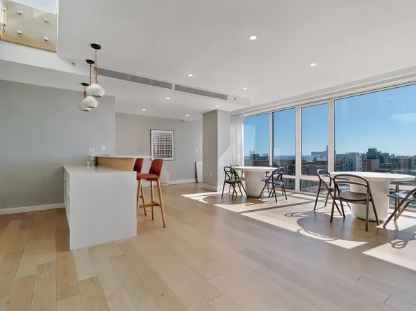 Thoughtfully designed, this apartment has a beautiful open-concept layout filled with natural light, highlighted by dramatic floor-to-ceiling windows and sleek hardwood flooring throughout.