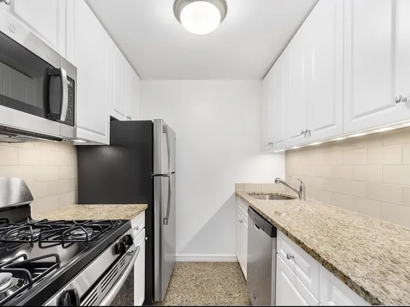 Available for a move on/after January 2nd, less holidays and weekends. This generously proportioned and RENOVATED west-facing studio residence features hardwood floors, ample closet space and oversized windows that offer excellent natural light, as well as city and Hudson River views! Your separate kitchen is outfitted with Caesarstone countertops and stainless-steel appliances including a GE dishwasher, gas range and oven, microwave, and Haier refrigerator.