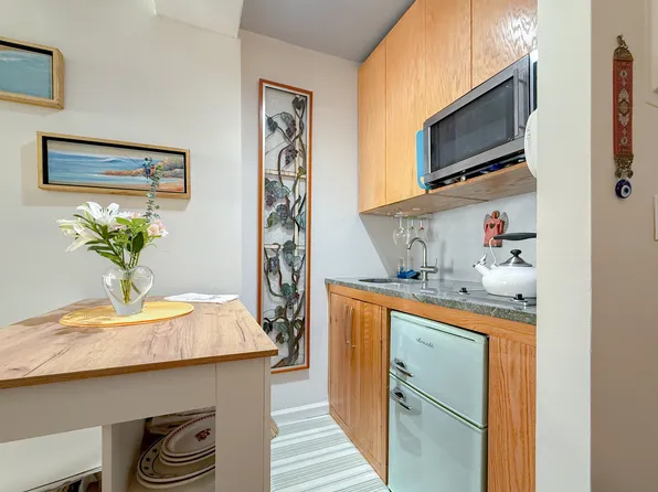 Stunningly renovated studio nestled within the historic charm of The Alden, a magnificent prewar building. This delightful apartment boasts lofty ceilings, a thoughtfully designed kitchen featuring stainless steel appliances and elegant carrara marble countertops, complete with a convenient breakfast counter. The recently updated marble bathroom offers a rejuvenating tub experience.