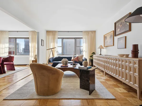 With its location at the very center of Manhattan across from the Museum of Modern Art, and at the cross-roads of the Entertainment, Finance and Commerce worlds, this very special apartment is a rarity. A peaceful home, which feels like a house, atop the Aristocrat, a 1949 deco co-op apartment building that exudes comfort and style. A high floor Duplex, there are North skyline views from each room, as well as the 26-foot terrace.