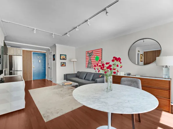 Perched high above the city, this inviting Park Avenue studio offers a perfect blend of charm and functionality. Flooded with natural light from oversized east-facing windows, the 23rd-floor home showcases sweeping city views. A custom-crafted millwork system maximizes space with a queen-sized Murphy bed, integrated cabinetry, open shelving with recessed lighting, and a sleek pull-out desk.