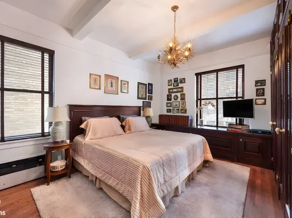 Enter through an inviting foyer that opens into a spacious living area where large windows overlook charming 73rd Street.