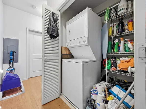 For sale: a beautiful southeast-facing 2-bedroom, 2-bath condo located in a historic Art Deco landmark building. This spacious home features soaring 10-foot ceilings, an abundance of natural light, and hardwood flooring throughout. The modern kitchen is equipped with granite countertops, stainless steel appliances, a dishwasher, and an in-unit washer/dryer.