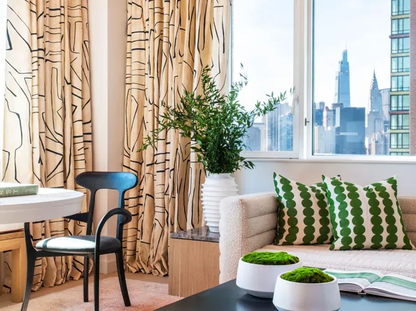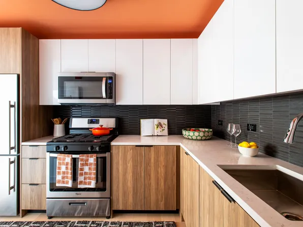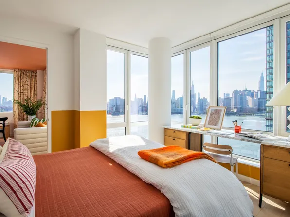 Located in historic Greenpoint Landing, this one- bedroom at The Bellslip boasts high ceiling windows, a year-round water view with a terrace, and an open kitchen design.