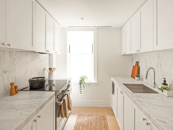 The 1-bedroom, 1-bathroom apartment has recently been renovated to include modern high-end finishes, appliances and crown molding.