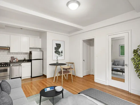 $1,000 Reduced Security Deposit for Qualified Applicants Interior facing studio with high ceilings, open kitchen with stainless steel appliances and a dishwasher. Electricity, heat and water are included.