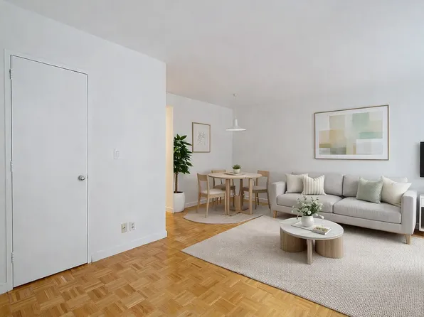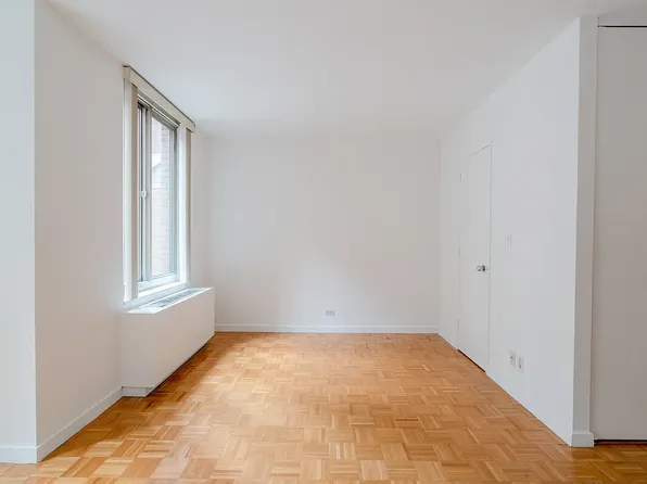 Large corner unit with southern exposure. Great location in a full service condo in the heart of Rockefeller Center. The unit features include central air, floor to ceiling windows, a luxury bathroom with double sinks and shower and bath, high end appliances including a Bosch washer-dryer, and incredible closet and storage space for a studio apartment.