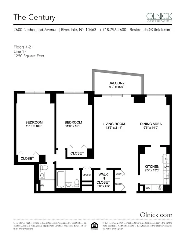 This stunning, modern two bedroom apartment features a king sized bedroom, an enormous living area, a fully equipped kitchen and a wonderful amount of closet space. Kitchen has brand new stainless steel appliances. Conveniently located in Riverdale, only twenty minutes away from midtown Manhattan and steps away from the Metro North, Century Tower is a stunning location to call your home.