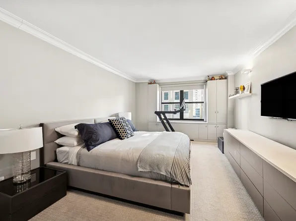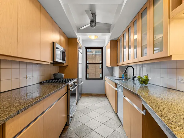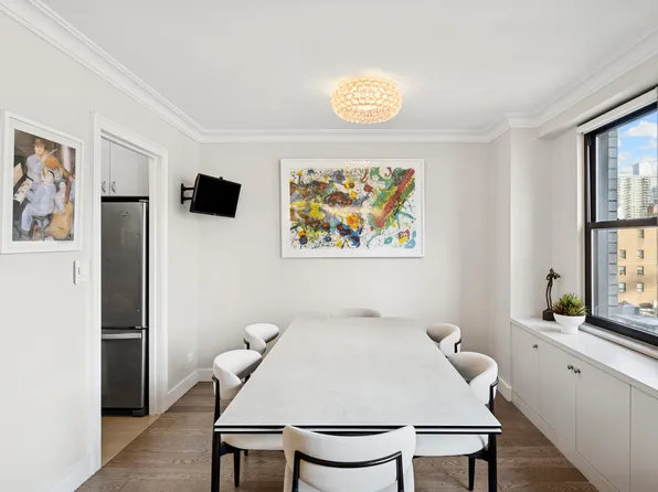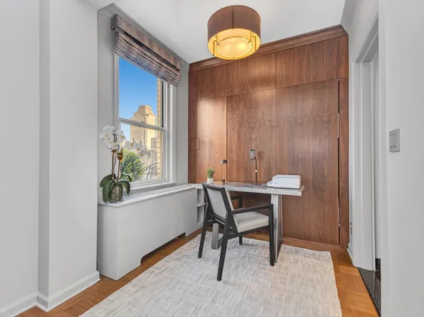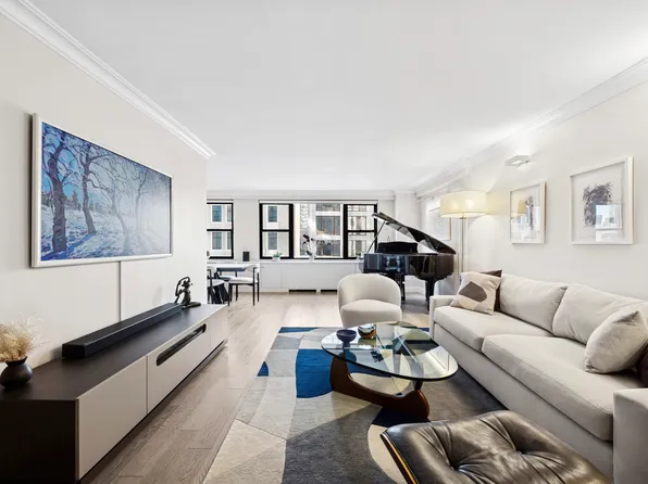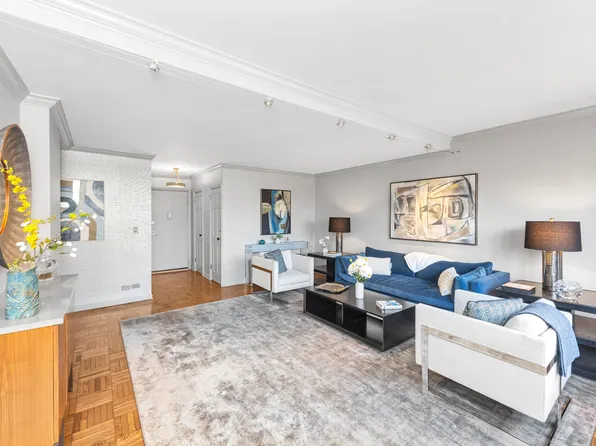 No board approval is required—just managing approval for this spacious and versatile 1-bedroom, 1.5-bathroom residence, which can easily be converted into a 2-bedroom, 2-bathroom home. Owned by the same family for 40 years, this high-floor unit offers quiet southern exposure with abundant natural light. The entry gallery leads to a 17-foot-wide living room with a dining bay, perfect for entertaining.