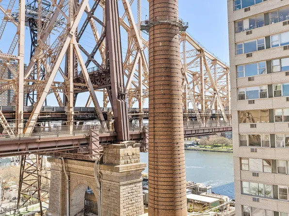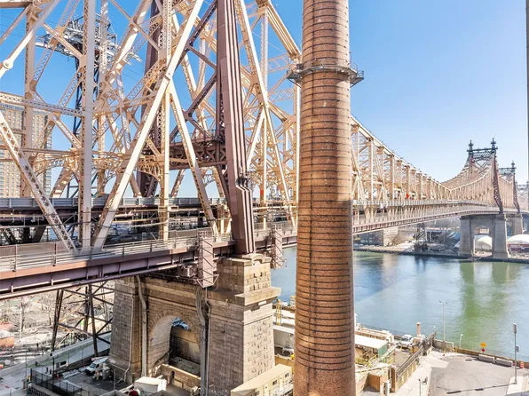 A welcoming foyer opens to a large living and dining area. Through a sliding glass door access the private balcony facing south with views east to the East River and beyond. The windowed kitchen provides ample storage and prep space.