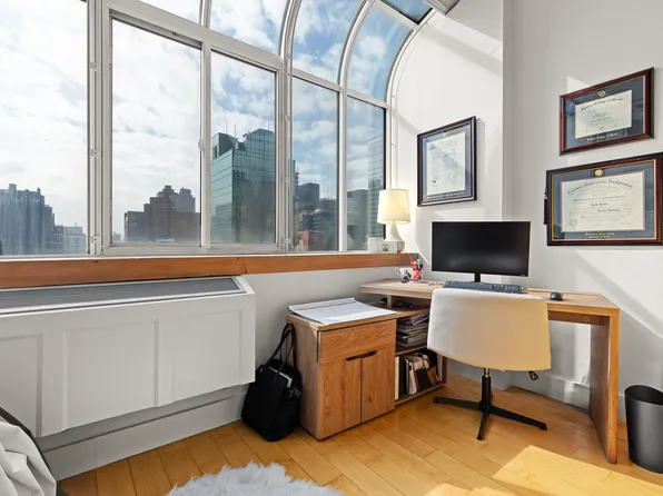 Welcome to this oversized, high-floor corner residence perched on the 31st floor of the prestigious Churchill, offering breathtaking, river and skyline views from every room. This exquisitely designed 1-bedroom home with private terrace is easily convertible to a 2-bedroom or home office.