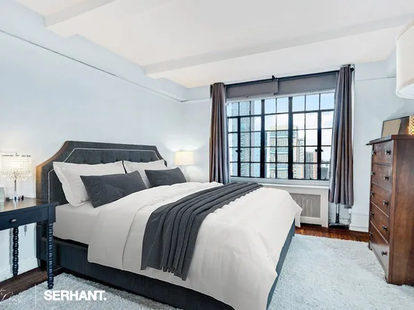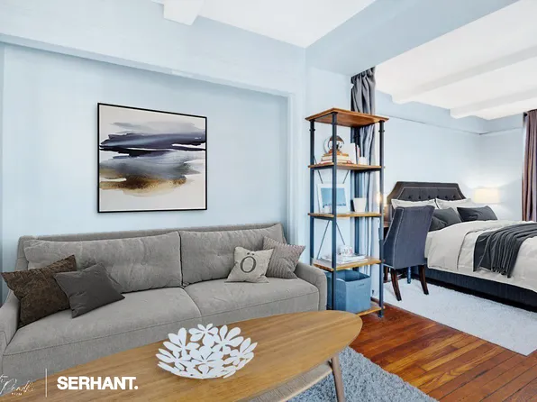 Beautiful and spacious, this alcove studio (Junior 1) spans approximately 600 square feet and features a generous 30-foot living and dining expanse, a defined sleeping alcove, and a private dressing area. A lovely corner residence, it enjoys south and west exposures that flood the home with natural light and offer open, unobstructed views.