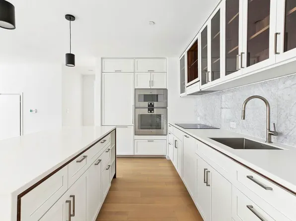 This extraordinary 2 Bedroom/ 2.5 Bathroom Duplex, spanning 1629 square feet, features a double-height living, Dining, Kitchen space with walls of floor-to-ceiling glass, heated 7-inch wide white oak flooring, multi-zone heating and cooling systems, and LED lighting throughout. The finishes and color palette blend seamlessly with each other and the wide swath of visible sky.