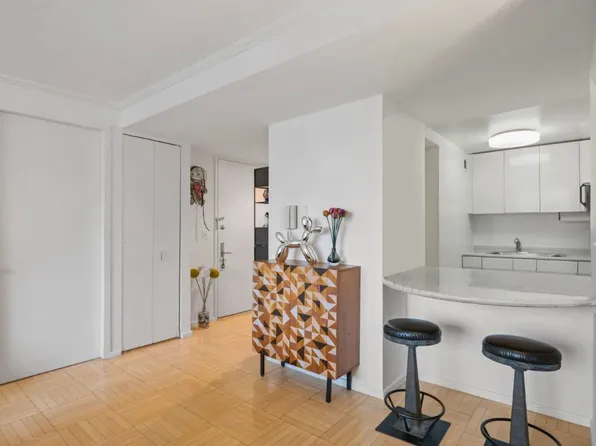 Welcome to 321 East 43rd Street, a beautifully renovated one-bedroom residence perfectly positioned in the tranquil enclave of Tudor City. This thoughtfully designed home combines classic pre-war character with modern comforts, creating a serene escape in the heart of Midtown East.