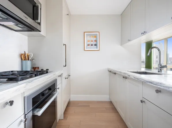 NO FEE. Beautiful and bright South-facing 3 bedroom, 2.5 bath apartment with brand new finishes. Apartment features custom built-in cabinetry, wide-planked maple wood flooring, and an in-unit washer and dryer. Spacious kitchen exhibits stainless steel Bertazzoni range, Subzero refrigerator, light maple cabinetry, and a custom paneled dishwasher. Two full baths feature Kohler fixtures, heated floors, rain showerhead and Caesarstone countertops.