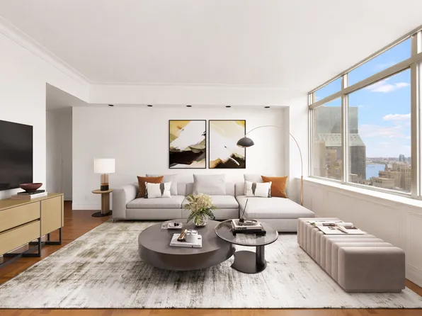 Residence 38L has Open Views of the East River through a large bay window, highlighting this 2-bedroom home. (converted from a very large one-bedroom).