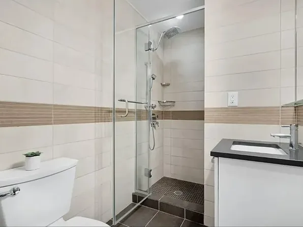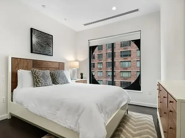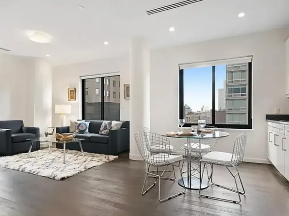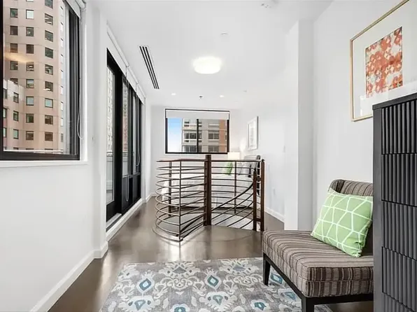 Bright and spacious two bedroom with private balcony and flexible floor plan with space for a dedicated dining or home office nook. Apartment also features a gourmet kitchen with stainless steel appliances and stone countertops, a primary bedroom with double exposures, two closets, and an en-suite bath, and wood floors throughout. Laundry is conveniently located on every floor.
