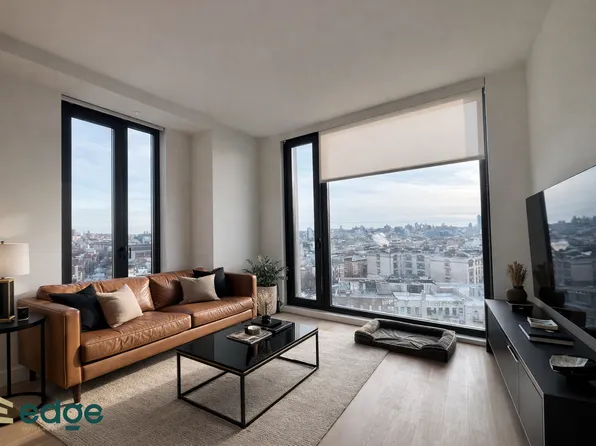 This modern one-bedroom residence at The Garnett offers a refined blend of comfort and contemporary design in the heart of Williamsburg. The thoughtfully designed layout features a spacious living area with floor-to-ceiling windows that provide abundant natural light and open to a private balcony, extending the living space outdoors.