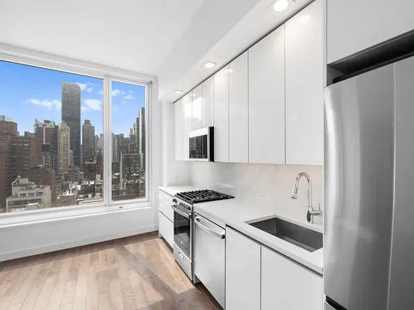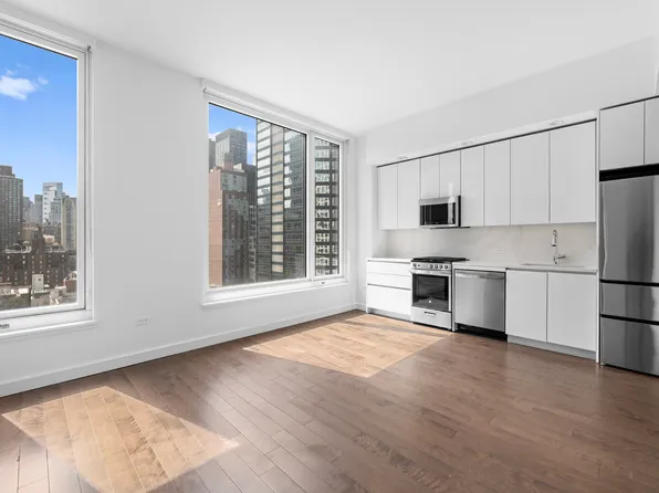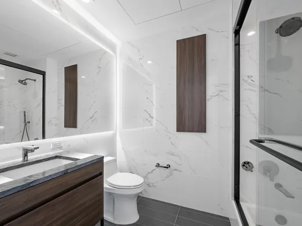 This N facing 1BR W/LARGE PRIVATE TERRACE residence features an open concept layout with hardwood floors, 10’ceilings and oversized windows that offer plenty of sunlight with expansive city views. Your kitchen is outfitted with a stainless-steel appliance package including dishwasher plus custom white gloss cabinetry, under cabinet lighting, and Calacatta Nuvo Caesarstone countertops and backsplashes to master any recipe in style.