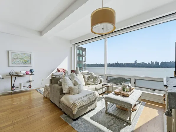 luxury waterfront living at its best located in the heart of edgewater. elegant 1bd + den covers a generous 998 sq ft plus a private 225 sq ft balcony with breathtaking hudson river & nyc views. this stunning southeast-facing unit is flooded with natural light! 10ft ceilings, floor-to-ceiling windows, open concept.