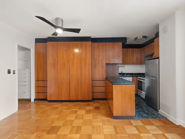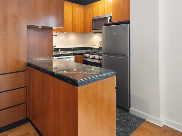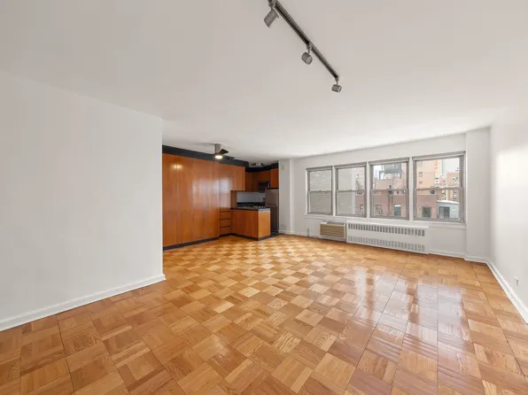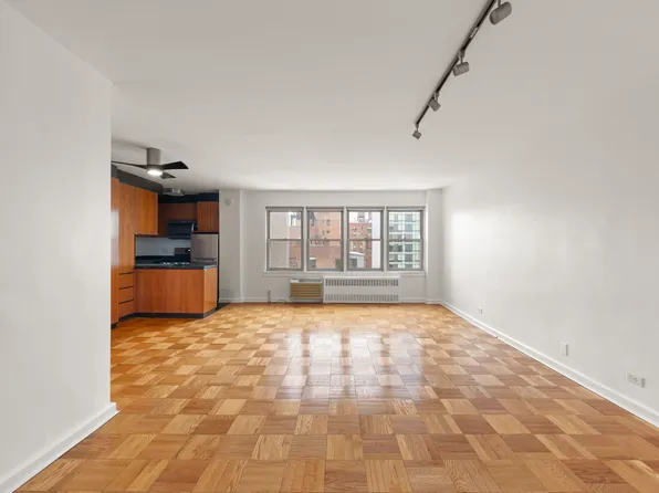 Avail for a mid Feb lease start date. Note, this is not a lobby level apartment as there are stairs that go up to the first floor. The studio is oversized and features a large entry foyer, separate dining area, large main living room with an area to put a bed, windowed kitchen with a dishwasher, dressing area and great closet space throughout.