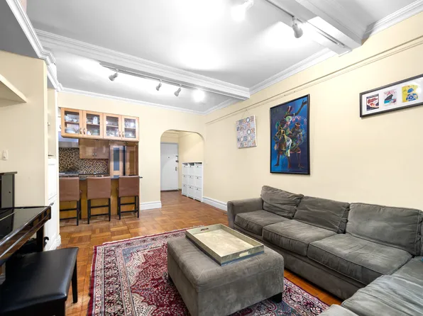 This gloriously renovated apartment offers two bedrooms and one and a half baths, high beamed ceilings, and pre-war charm. Stepping through the large entry foyer, you will not be able to take your eyes off the view and the light streaming through the open southern exposure.