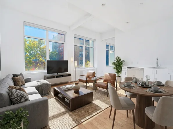 Williamsburg is Brooklyn's booming epicenter with a well-deserved and worldwide reputation for being an influential hub thanks to a thriving cultural scene. Here you will find eye-catching new construction, brownstones, and prewars sitting next to historic buildings on streets dotted with restaurants, art spaces, boutiques, and more. With a Manhattan-facing waterfront (hello Domino Park!) and its large weekend markets (we're talking about you, Smorgasburg, and Artists & Fleas), the neighborhood is ideal for strolling and people watching. Another fringe benefit is Williamsburg's proximity to Manhattan via the G, L, M, and N subway lines.