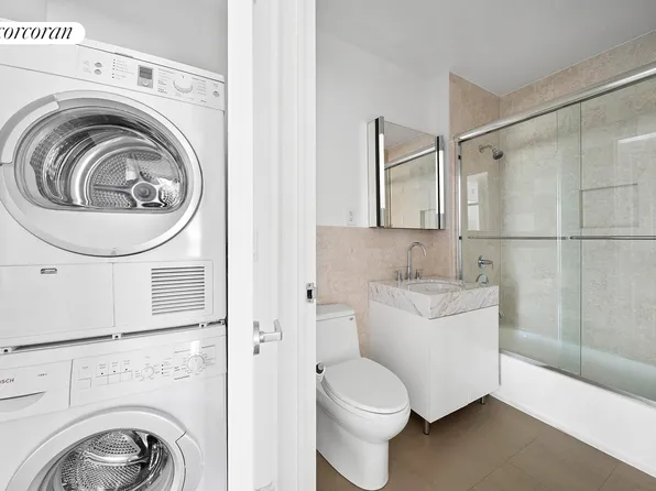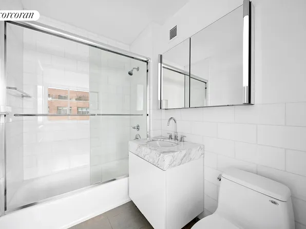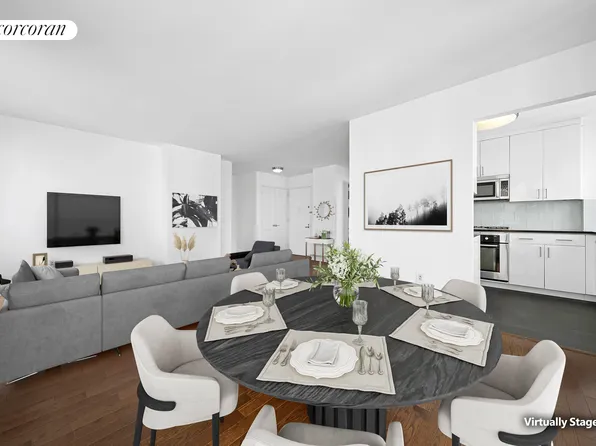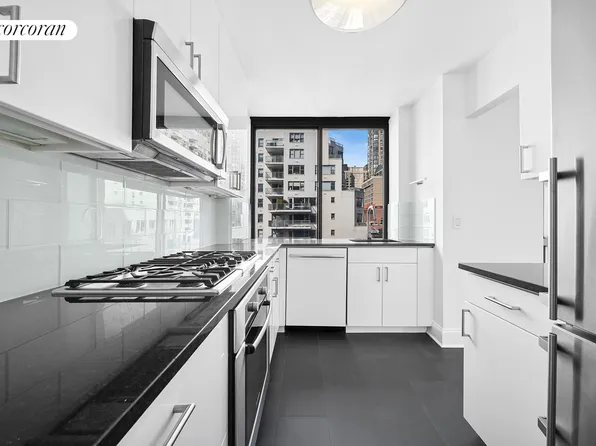 One of a kind, fully renovated, sun filled, corner 2 bedroom, 2.5 bath plus den or 3rd bedroom home in the luxury Kingsley Condominium on the Upper East Side. You are welcomed into a long entry foyer with coat closet and a chic modern powder room. The huge living/dining room has oversized windows on three sides facing south, west and north.